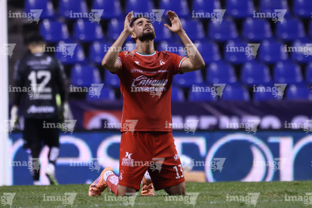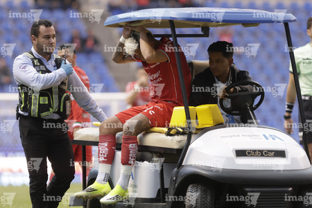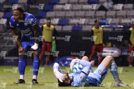 Puebla, Puebla, 13 de enero de 2026. Andrés Gudiño resultó lesionado, durante el partido correspondiente a la jornada 2 del torneo Clausura 2026 de la Liga BBVA MX, entre la Máquina Celeste del Cruz Azul y los Rojinegros del Atlas, realizado en el estadio Cuauhtémoc. Foto: Imago7/ Diego Alducin
