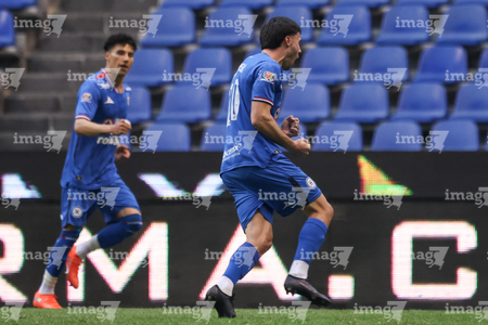 Puebla, Puebla, 13 de enero de 2026. José Paradela en festejo de gol, durante el partido correspondiente a la jornada 2 del torneo Clausura 2026 de la Liga BBVA MX, entre la Máquina Celeste del Cruz Azul y los Rojinegros del Atlas, realizado en el estadio Cuauhtémoc. Foto: Imago7/ Alexis Chavez