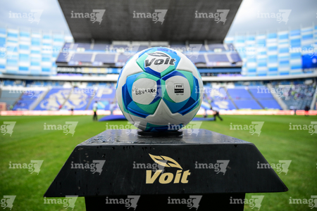 Puebla, Puebla, 13 de enero de 2026. Balón de futbol Voit Aereus, durante el partido correspondiente a la jornada 2 del torneo Clausura 2026 de la Liga BBVA MX, entre la Máquina Celeste del Cruz Azul y los Rojinegros del Atlas, realizado en el estadio Cuauhtémoc. Foto: Imago7/ Alexis Chavez