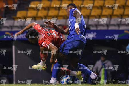 Puebla, Puebla, 13 de enero de 2026. Gabriel Fernández y Diego González, durante el partido correspondiente a la jornada 2 del torneo Clausura 2026 de la Liga BBVA MX, entre la Máquina Celeste del Cruz Azul y los Rojinegros del Atlas, realizado en el estadio Cuauhtémoc. Foto: Imago7/ Alexis Chavez