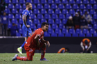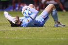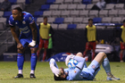 Puebla, Puebla, 13 de enero de 2026. Diego González resultó lesionado, durante el partido correspondiente a la jornada 2 del torneo Clausura 2026 de la Liga BBVA MX, entre la Máquina Celeste del Cruz Azul y los Rojinegros del Atlas, realizado en el estadio Cuauhtémoc. Foto: Imago7/Mireya Novo