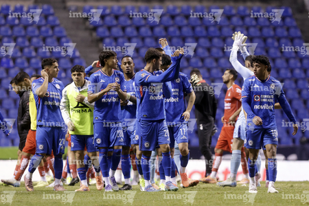 Puebla, Puebla, 13 de enero de 2026. Jugadores de Cruz Azul, durante el partido correspondiente a la jornada 2 del torneo Clausura 2026 de la Liga BBVA MX, entre la Máquina Celeste del Cruz Azul y los Rojinegros del Atlas, realizado en el estadio Cuauhtémoc. Foto: Imago7/Mireya Novo