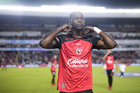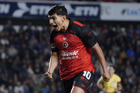 Querétaro, Querétaro, 14 de enero de 2026. Ali Avila en festejo de gol, durante el partido correspondiente a la jornada 2 del torneo Clausura 2026 de la Liga BBVA MX, entre los Gallos Blancos del Querétaro y los Xolos de Tijuana, realizado en el estadio La Corregidora. Foto: Imago7/ Duilio Muñoz
