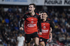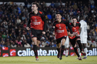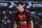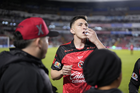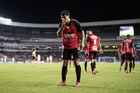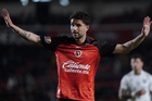 Querétaro, Querétaro, 14 de enero de 2026. Ali Avila en festejo de gol, durante el partido correspondiente a la jornada 2 del torneo Clausura 2026 de la Liga BBVA MX, entre los Gallos Blancos del Querétaro y los Xolos de Tijuana, realizado en el estadio La Corregidora. Foto: Imago7/ Sebastian Laureano Miranda
