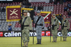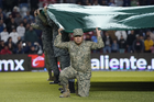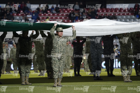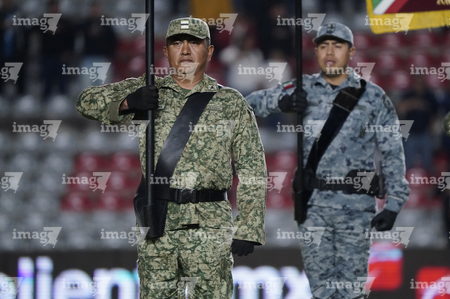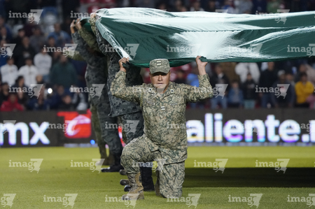 Querétaro, Querétaro, 14 de enero de 2026. Elementos del Ejército, durante el partido correspondiente a la jornada 2 del torneo Clausura 2026 de la Liga BBVA MX, entre los Gallos Blancos del Querétaro y los Xolos de Tijuana, realizado en el estadio La Corregidora. Foto: Imago7/ Sebastian Laureano Miranda