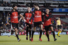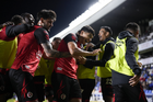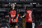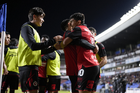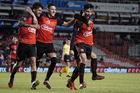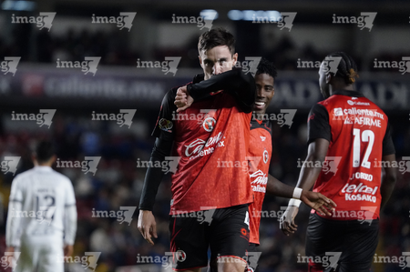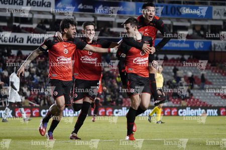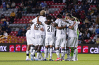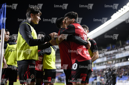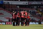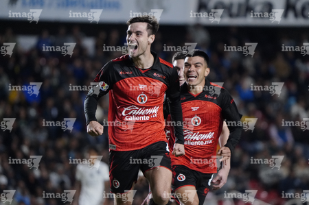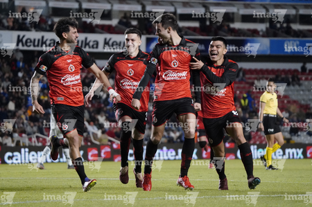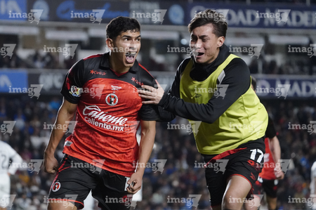 Querétaro, Querétaro, 14 de enero de 2026. Jugadores de Xolos en festejo de gol, durante el partido correspondiente a la jornada 2 del torneo Clausura 2026 de la Liga BBVA MX, entre los Gallos Blancos del Querétaro y los Xolos de Tijuana, realizado en el estadio La Corregidora. Foto: Imago7/ Sebastian Laureano Miranda