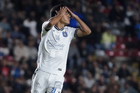 Querétaro, Querétaro, 14 de enero de 2026. Kevin Castañeda en lamento, durante el partido correspondiente a la jornada 2 del torneo Clausura 2026 de la Liga BBVA MX, entre los Gallos Blancos del Querétaro y los Xolos de Tijuana, realizado en el estadio La Corregidora. Foto: Imago7/ Duilio Muñoz