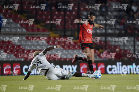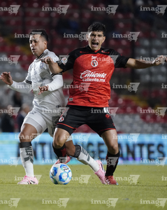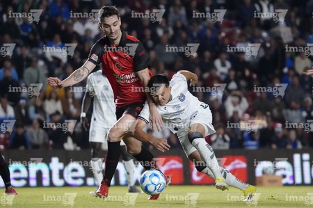 Querétaro, Querétaro, 14 de enero de 2026. Jaime Gómez y Rafael Fernández, durante el partido correspondiente a la jornada 2 del torneo Clausura 2026 de la Liga BBVA MX, entre los Gallos Blancos del Querétaro y los Xolos de Tijuana, realizado en el estadio La Corregidora. Foto: Imago7/ Sebastian Laureano Miranda