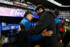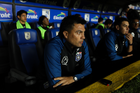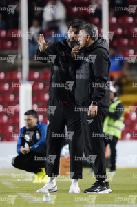 Querétaro, Querétaro, 14 de enero de 2026. Sebastián "Loco" Abreu, director técnico y Sergio Almaguer, auxiliar técnico, durante el partido correspondiente a la jornada 2 del torneo Clausura 2026 de la Liga BBVA MX, entre los Gallos Blancos del Querétaro y los Xolos de Tijuana, realizado en el estadio La Corregidora. Foto: Imago7/ Sebastian Laureano Miranda