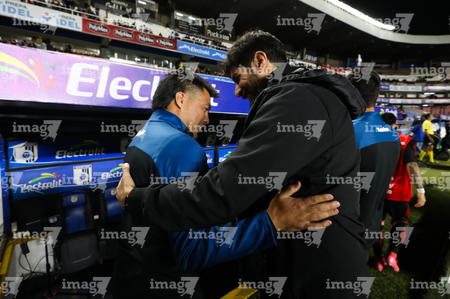 Querétaro, Querétaro, 14 de enero de 2026. Esteban González, director técnico y Sebastián "Loco" Abreu, director técnico, durante el partido correspondiente a la jornada 2 del torneo Clausura 2026 de la Liga BBVA MX, entre los Gallos Blancos del Querétaro y los Xolos de Tijuana, realizado en el estadio La Corregidora. Foto: Imago7/ Duilio Muñoz