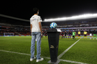 Querétaro, Querétaro, 14 de enero de 2026. Sebastián "Loco" Abreu, director técnico, durante el partido correspondiente a la jornada 2 del torneo Clausura 2026 de la Liga BBVA MX, entre los Gallos Blancos del Querétaro y los Xolos de Tijuana, realizado en el estadio La Corregidora. Foto: Imago7/ Duilio Muñoz