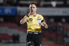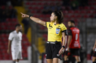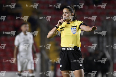 Querétaro, Querétaro, 14 de enero de 2026. Karen Hernández Andrade, árbitra central, durante el partido correspondiente a la jornada 2 del torneo Clausura 2026 de la Liga BBVA MX, entre los Gallos Blancos del Querétaro y los Xolos de Tijuana, realizado en el estadio La Corregidora. Foto: Imago7/ Sebastian Laureano Miranda