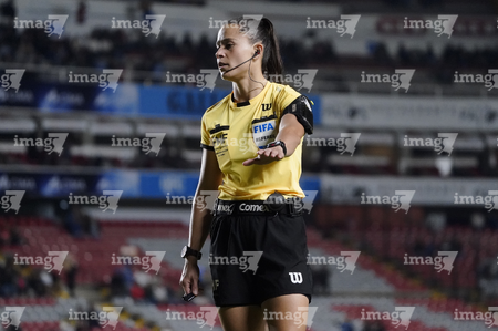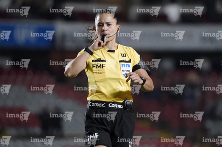 Querétaro, Querétaro, 14 de enero de 2026. Karen Hernández Andrade, árbitra central, durante el partido correspondiente a la jornada 2 del torneo Clausura 2026 de la Liga BBVA MX, entre los Gallos Blancos del Querétaro y los Xolos de Tijuana, realizado en el estadio La Corregidora. Foto: Imago7/ Duilio Muñoz