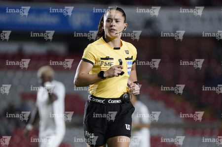 Querétaro, Querétaro, 14 de enero de 2026. Karen Hernández Andrade, árbitra central, durante el partido correspondiente a la jornada 2 del torneo Clausura 2026 de la Liga BBVA MX, entre los Gallos Blancos del Querétaro y los Xolos de Tijuana, realizado en el estadio La Corregidora. Foto: Imago7/