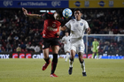 Querétaro, Querétaro, 14 de enero de 2026. Diego Reyes y Mourad Daoudi, durante el partido correspondiente a la jornada 2 del torneo Clausura 2026 de la Liga BBVA MX, entre los Gallos Blancos del Querétaro y los Xolos de Tijuana, realizado en el estadio La Corregidora. Foto: Imago7/ Sebastian Laureano Miranda