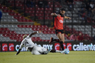 Querétaro, Querétaro, 14 de enero de 2026. Michael Carcelen resultó lesionado, durante el partido correspondiente a la jornada 2 del torneo Clausura 2026 de la Liga BBVA MX, entre los Gallos Blancos del Querétaro y los Xolos de Tijuana, realizado en el estadio La Corregidora. Foto: Imago7/ Duilio Muñoz