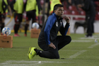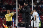 Querétaro, Querétaro, 14 de enero de 2026. Sebastián "Loco" Abreu, director técnico, durante el partido correspondiente a la jornada 2 del torneo Clausura 2026 de la Liga BBVA MX, entre los Gallos Blancos del Querétaro y los Xolos de Tijuana, realizado en el estadio La Corregidora. Foto: Imago7/ Sebastian Laureano Miranda