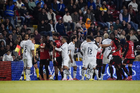 Querétaro, Querétaro, 14 de enero de 2026. Jugadores de Querétaro, durante el partido correspondiente a la jornada 2 del torneo Clausura 2026 de la Liga BBVA MX, entre los Gallos Blancos del Querétaro y los Xolos de Tijuana, realizado en el estadio La Corregidora. Foto: Imago7/ Duilio Muñoz