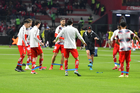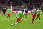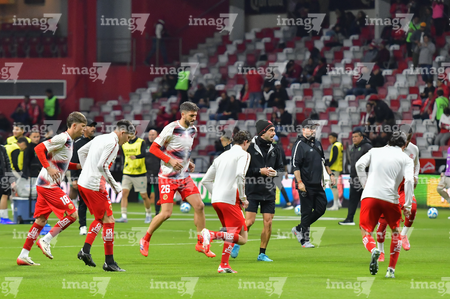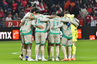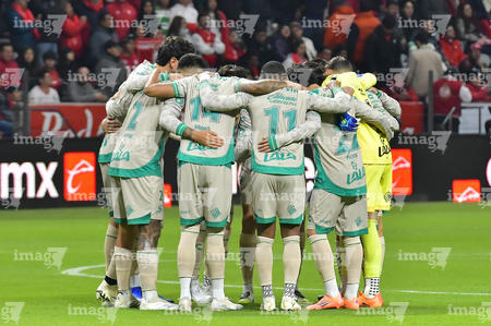 Toluca, Estado de México, 14 de enero de 2026. Jugadores del Santos Laguna, durante el partido correspondiente a la jornada 2 del torneo Clausura 2026 de la Liga BBVA MX, entre los Diablos Rojos del Toluca y los Guerreros de Santos Laguna, realizado en el estadio Nemesio Diez. Foto: Imago7/ Arturo Hernández