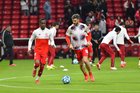 Toluca, Estado de México, 14 de enero de 2026. Jugadores del Toluca, durante el partido correspondiente a la jornada 2 del torneo Clausura 2026 de la Liga BBVA MX, entre los Diablos Rojos del Toluca y los Guerreros de Santos Laguna, realizado en el estadio Nemesio Diez. Foto: Imago7/ Arturo Hernández