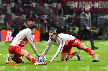 Toluca, Estado de México, 14 de enero de 2026. Lucas Di Yorio y Federico Pereira, durante el partido correspondiente a la jornada 2 del torneo Clausura 2026 de la Liga BBVA MX, entre los Diablos Rojos del Toluca y los Guerreros de Santos Laguna, realizado en el estadio Nemesio Diez. Foto: Imago7 / Daniel Arriaga