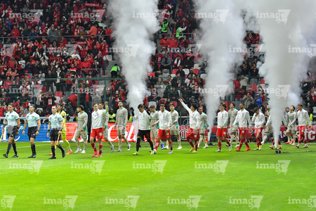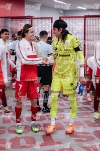 Toluca, Estado de México, 14 de enero de 2026. Protocolo, durante el partido correspondiente a la jornada 2 del torneo Clausura 2026 de la Liga BBVA MX, entre los Diablos Rojos del Toluca y los Guerreros de Santos Laguna, realizado en el estadio Nemesio Diez. Foto: Imago7/ Arturo Hernández