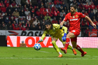 Toluca, Estado de México, 14 de enero de 2026. Helinho anota gol de penal, durante el partido correspondiente a la jornada 2 del torneo Clausura 2026 de la Liga BBVA MX, entre los Diablos Rojos del Toluca y los Guerreros de Santos Laguna, realizado en el estadio Nemesio Diez. Foto: Imago7/