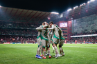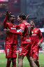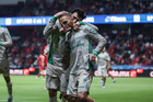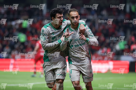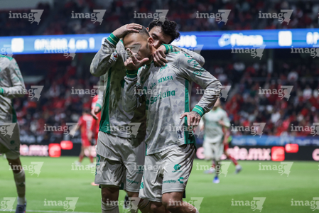 Toluca, Estado de México, 14 de enero de 2026. Jugadores del Santos Laguna en festejo de gol, durante el partido correspondiente a la jornada 2 del torneo Clausura 2026 de la Liga BBVA MX, entre los Diablos Rojos del Toluca y los Guerreros de Santos Laguna, realizado en el estadio Nemesio Diez. Foto: Imago7 / Daniel Arriaga