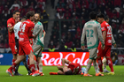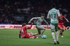 Toluca, Estado de México, 14 de enero de 2026. Paulinho resultó lesionado, durante el partido correspondiente a la jornada 2 del torneo Clausura 2026 de la Liga BBVA MX, entre los Diablos Rojos del Toluca y los Guerreros de Santos Laguna, realizado en el estadio Nemesio Diez. Foto: Imago7/ Arturo Hernández