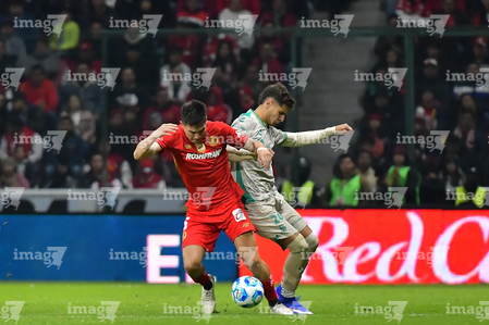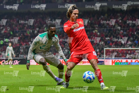 Toluca, Estado de México, 14 de enero de 2026. Marcel Ruiz y Antonio Briseño, durante el partido correspondiente a la jornada 2 del torneo Clausura 2026 de la Liga BBVA MX, entre los Diablos Rojos del Toluca y los Guerreros de Santos Laguna, realizado en el estadio Nemesio Diez. Foto: Imago7/ Arturo Hernández