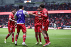 Toluca, Estado de México, 14 de enero de 2026. Francisco Villalba en festejo de gol, durante el partido correspondiente a la jornada 2 del torneo Clausura 2026 de la Liga BBVA MX, entre los Diablos Rojos del Toluca y los Guerreros de Santos Laguna, realizado en el estadio Nemesio Diez. Foto: Imago7 / Daniel Arriaga