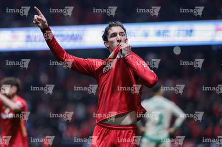 Toluca, Estado de México, 14 de enero de 2026. Marcel Ruiz en festejo de gol, durante el partido correspondiente a la jornada 2 del torneo Clausura 2026 de la Liga BBVA MX, entre los Diablos Rojos del Toluca y los Guerreros de Santos Laguna, realizado en el estadio Nemesio Diez. Foto: Imago7/