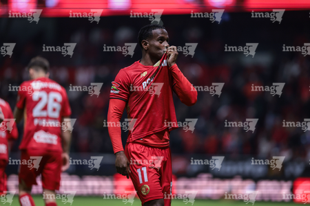 Toluca, Estado de México, 14 de enero de 2026. Manta, durante el partido correspondiente a la jornada 2 del torneo Clausura 2026 de la Liga BBVA MX, entre los Diablos Rojos del Toluca y los Guerreros de Santos Laguna, realizado en el estadio Nemesio Diez. Foto: Imago7 / Daniel Arriaga