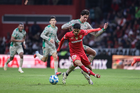 Toluca, Estado de México, 14 de enero de 2026. Franco Romero (D), durante el partido correspondiente a la jornada 2 del torneo Clausura 2026 de la Liga BBVA MX, entre los Diablos Rojos del Toluca y los Guerreros de Santos Laguna, realizado en el estadio Nemesio Diez. Foto: Imago7 / Daniel Arriaga