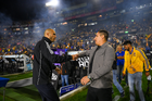 San Nicolás de los Garza, Nuevo León, 14 de enero de 2026. Jorge Campos y Alvaro López Sordo, durante el partido correspondiente a la jornada 2 del torneo Clausura 2026 de la Liga BBVA MX, entre los Tigres de la UANL y los Pumas de la UNAM, realizado en el estadio Universitario. Foto: Imago7/David Arzamendi