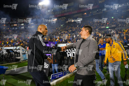 San Nicolás de los Garza, Nuevo León, 14 de enero de 2026. Guido Pizarro, director técnico y Efraín Juárez, director técnico, durante el partido correspondiente a la jornada 2 del torneo Clausura 2026 de la Liga BBVA MX, entre los Tigres de la UANL y los Pumas de la UNAM, realizado en el estadio Universitario. Foto: Imago7/