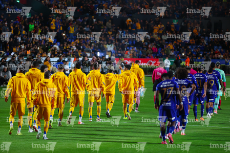 San Nicolás de los Garza, Nuevo León, 14 de enero de 2026. Protocolo, durante el partido correspondiente a la jornada 2 del torneo Clausura 2026 de la Liga BBVA MX, entre los Tigres de la UANL y los Pumas de la UNAM, realizado en el estadio Universitario. Foto: Imago7/Nora Pamela