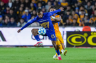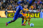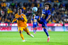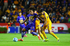 San Nicolás de los Garza, Nuevo León, 14 de enero de 2026. Ángel Correa y Ángel Azuaje, durante el partido correspondiente a la jornada 2 del torneo Clausura 2026 de la Liga BBVA MX, entre los Tigres de la UANL y los Pumas de la UNAM, realizado en el estadio Universitario. Foto: Imago7/