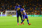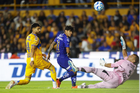 San Nicolás de los Garza, Nuevo León, 14 de enero de 2026. André-Pierre Gignac y Keylor Navas, durante el partido correspondiente a la jornada 2 del torneo Clausura 2026 de la Liga BBVA MX, entre los Tigres de la UANL y los Pumas de la UNAM, realizado en el estadio Universitario. Foto: Imago7/