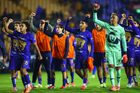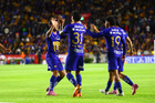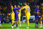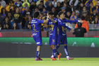 San Nicolás de los Garza, Nuevo León, 14 de enero de 2026. Jugadores de Pumas en festejo, durante el partido correspondiente a la jornada 2 del torneo Clausura 2026 de la Liga BBVA MX, entre los Tigres de la UANL y los Pumas de la UNAM, realizado en el estadio Universitario. Foto: Imago7/David Arzamendi