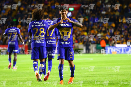 San Nicolás de los Garza, Nuevo León, 14 de enero de 2026. Robert Morales en festejo de gol, durante el partido correspondiente a la jornada 2 del torneo Clausura 2026 de la Liga BBVA MX, entre los Tigres de la UANL y los Pumas de la UNAM, realizado en el estadio Universitario. Foto: Imago7/David Arzamendi