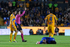San Nicolás de los Garza, Nuevo León, 14 de enero de 2026. Alvaro Angulo en lamento durante el partido correspondiente a la jornada 2 del torneo Clausura 2026 de la Liga BBVA MX, entre los Tigres de la UANL y los Pumas de la UNAM, realizado en el estadio Universitario. Foto: Imago7/