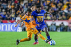 San Nicolás de los Garza, Nuevo León, 14 de enero de 2026. Diego Lainez, durante el partido correspondiente a la jornada 2 del torneo Clausura 2026 de la Liga BBVA MX, entre los Tigres de la UANL y los Pumas de la UNAM, realizado en el estadio Universitario. Foto: Imago7/David Arzamendi
