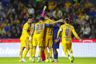 San Nicolás de los Garza, Nuevo León, 14 de enero de 2026. Jugadores de Tigres en reclamo a árbitros, durante el partido correspondiente a la jornada 2 del torneo Clausura 2026 de la Liga BBVA MX, entre los Tigres de la UANL y los Pumas de la UNAM, realizado en el estadio Universitario. Foto: Imago7/Nora Pamela
