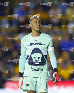 San Nicolás de los Garza, Nuevo León, 14 de enero de 2026. Nahuel Guzmán, durante el partido correspondiente a la jornada 2 del torneo Clausura 2026 de la Liga BBVA MX, entre los Tigres de la UANL y los Pumas de la UNAM, realizado en el estadio Universitario. Foto: Imago7/David Arzamendi