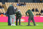 San Nicolás de los Garza, Nuevo León, 17 de enero de 2026. Personal de mantenimiento, durante el partido correspondiente a la jornada 3 del torneo Clausura 2026 de la Liga BBVA MX, entre los Tigres de la UANL y los Diablos Rojos del Toluca, realizado en el estadio Universitario. Foto: Imago7/ Andrea Jiménez