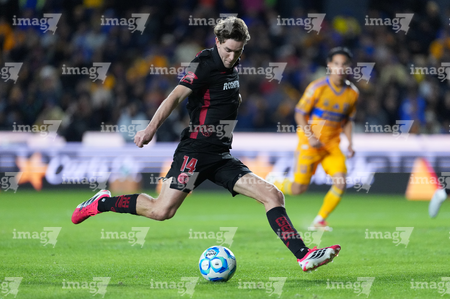 San Nicolás de los Garza, Nuevo León, 17 de enero de 2026. Jesús Angulo "Canelo", durante el partido correspondiente a la jornada 3 del torneo Clausura 2026 de la Liga BBVA MX, entre los Tigres de la UANL y los Diablos Rojos del Toluca, realizado en el estadio Universitario. Foto: Imago7/David Arzamendi