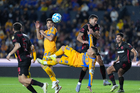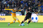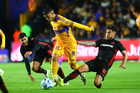 San Nicolás de los Garza, Nuevo León, 17 de enero de 2026. Sebastián Córdova y André-Pierre Gignac, durante el partido correspondiente a la jornada 3 del torneo Clausura 2026 de la Liga BBVA MX, entre los Tigres de la UANL y los Diablos Rojos del Toluca, realizado en el estadio Universitario. Foto: Imago7/ Andrea Jiménez