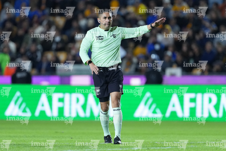 San Nicolás de los Garza, Nuevo León, 17 de enero de 2026. Oscar Mejía García, árbitro central, durante el partido correspondiente a la jornada 3 del torneo Clausura 2026 de la Liga BBVA MX, entre los Tigres de la UANL y los Diablos Rojos del Toluca, realizado en el estadio Universitario. Foto: Imago7/ Andrea Jiménez