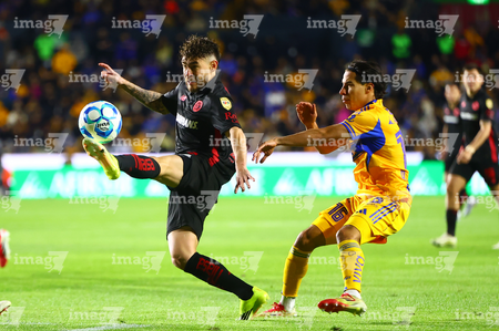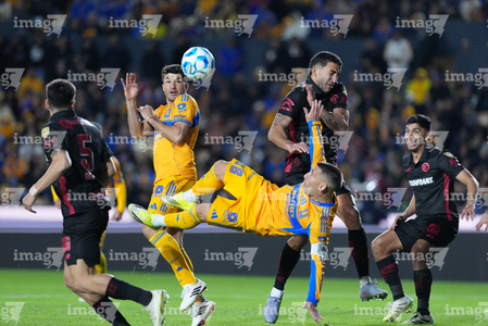San Nicolás de los Garza, Nuevo León, 17 de enero de 2026. Fernando Gorriarán ejecuta chilena, durante el partido correspondiente a la jornada 3 del torneo Clausura 2026 de la Liga BBVA MX, entre los Tigres de la UANL y los Diablos Rojos del Toluca, realizado en el estadio Universitario. Foto: Imago7/ Andrea Jiménez